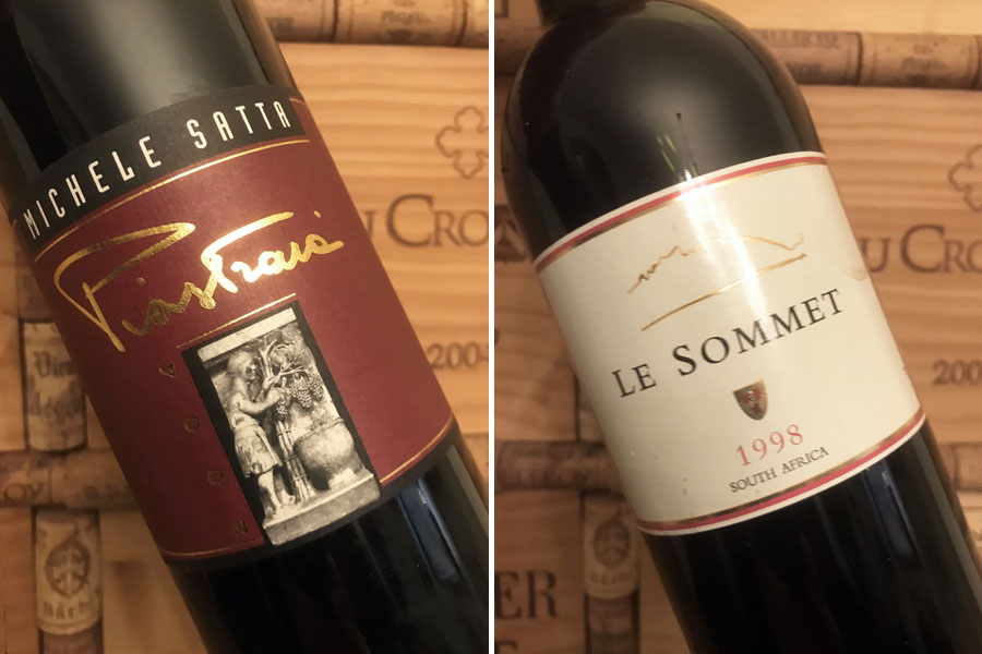 Mont du Toit, Le Sommet, 1998 (Wellington, JAR), (foto 2 b)Vinařství bylo založeno v roce 1996 a obhospodařuje 28 ha. Složení cuvée je Cabernet, Alicante Bouschet, Syrah, Cabernet Franc, Merlot, Petit Verdot. Vůně je elegantní, komplexní, nazrálá, spojitá a podmanivá, minerálně-ovocná (černý rybíz, ostružiny), s tóny koření, bylin a podtextem dřeva. Chuť navazuje, přidává se medová nasládlost, která vytváří příjemný kontrast s kořením. Víno má pevnou a přesnou strukturu, je krásně šťavnaté, srovnané a v projevu hladké, s vyššími vyzrálými ovocnými taniny, středním až mírně plnějším tělem a dlouhou perzistencí. Krásné, temné a vycizelované víno.