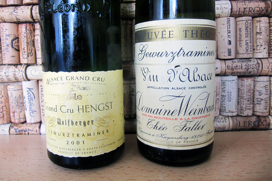 Na stole stojí dvě lahve: Wolfberger, Gewurtztraminer „Hengst“ Grand Cru, 2001 a Domaine Weinbach, Gewurtztraminer „Cuvée Théo“, AOC, 1991 (foto 1). První v parádním ročníku (RP 91) slibujícím velké zážitky, druhý v hodně špatném (RP 78), po těch letech téměř odsuzujícím víno k doživotnímu zachování na výstavce. Jenže... kolik takových vyvrácených „předpokladů“ už jsem (nejen s vínem) v životě zažil.