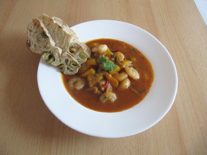 Krevety s omáčkou z červeného kari, kokosovým mlékem a koriandrem (foto 6)Tady hodně záleží na poměru červeného kari a kokosového mléka. Wolfberger byl chvíli fajn, ale ve druhé části chuti ho pálivost kari smázla. Sladkost a nazrálost Weinbachu fungovala mnohem lépe, přesto v dochuti získávalo prim kari až příliš. Tady by se hodila trochu snížit koncentrace…