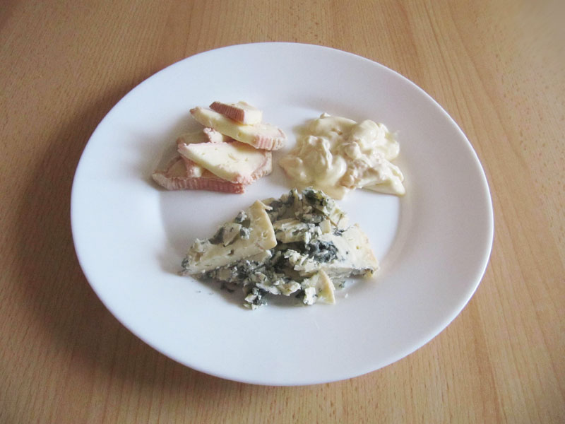 Sýry (foto 7)Munster: Totální match. Úžasný proplétací tanec chutí u obou vín. Doporučuji!Epoisses: Obě vína fungují výborně, harmonie na jedničku. Jen Wolfbergeru v dochuti chybí sladkost, která by vyvážila hořčinu z okrajů Eppoises. Weinbach na pohodu.Bleu d'Auvergne: Wolfberger na něj nedosáhne vůbec, Weinbach částečně. Tento sýr vyžaduje ještě něco sladšího a plnějšího (třeba Sauternes či Barsac). Tahle kombinace byla hodně na zkoušku (původně vybraný sýr nebyl k dispozici) a prostě nevyšla.