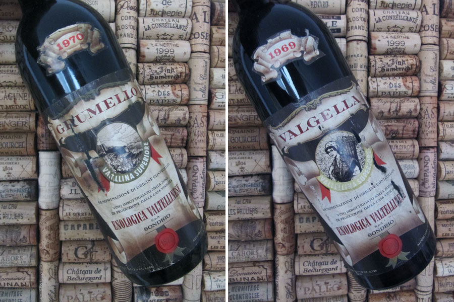 Nic, vína mám v ruce... Jedná se o Grumello 1970 a Valgellu 1969 (foto 1). Ty názvy jsou jména místních subregionů, kterých je celkem pět (ještě Inferno, Maroggia a nejvyhlášenější Sassela). Nebudu to zdržovat, sám jsem dost zvědavý.