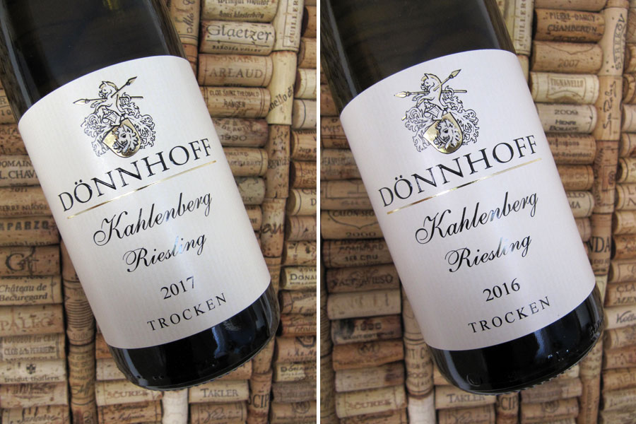 Weingut Dönnhoff, Riesling „Kahlenberg“ trocken, 2017 (foto 3a)Vůně je plnější a středně intenzívní, podobná předešlé, ale s citelnou hořčinkou a nižší detailností, zpočátku více do citrusů a zajímavých tónů známých z Chita nebo Tonicu, později se objevuje vanilka. Chuť dokonale navazuje. Pevná a přesná struktura, šťavnatost a celkem i vyváženost, ale působí „slitěji“, bez větších detailů. Plnější tělo a delší až dlouhá perzistence. Pořád je to super víno, ale předešlé mě teď baví víc. Možná je v nějaké přechodné fázi a teprve zazáří. Ročník je to výborný.