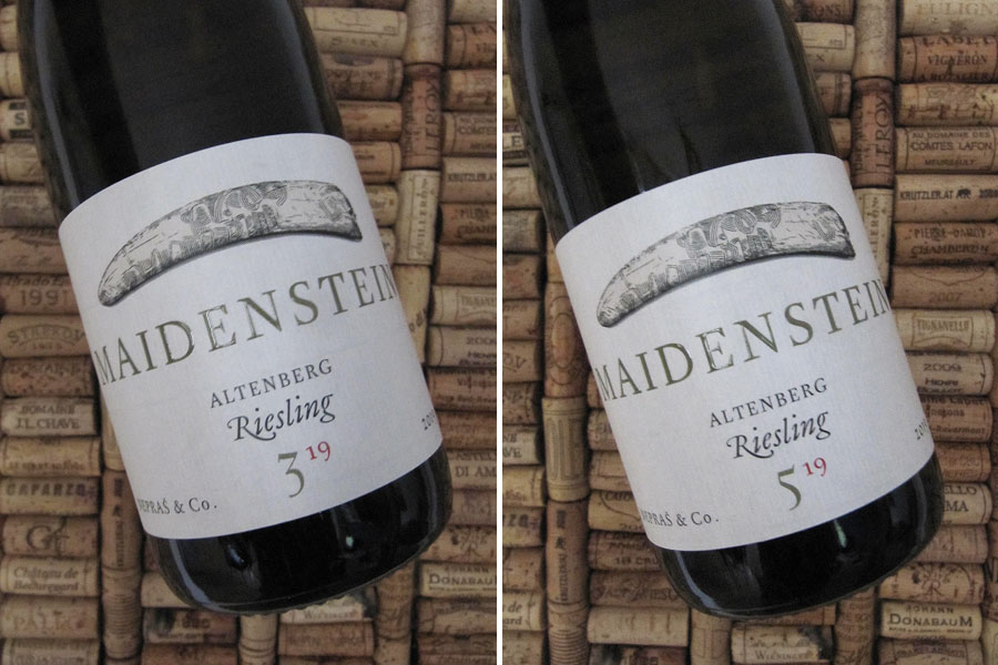 „Altenberg“ Ryzlink rýnský „5“, p. s., 2019 (foto 2b)Vůně poměrně intenzívní, plná, hladká a vyvážená, minerálně-ovocná (meruňky, peckovina). Chuť navazuje, jde více do minerální slanosti. Víno je velmi dobře postavené, ideálně šťavnaté, harmonické a chuťově vyvážené, v těle plnější (lehce vyšší cukr oproti předešlému mu sluší i v těle), má delší až dlouhou perzistenci s velmi příjemnou ovocnou dochutí. Skvěle vyvážené víno s parádní pitelností. Cena na vinařství je 330 Kč.