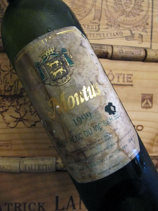 Montus, Pacherenc du Vic-Bilh Sec, AOC, 1999 (foto 4)Vůně je noblesní, nazrálá a pefektně vyvážená, plnější a poměrně intenzívní, minerálně-ovocná (kandovaná pomerančová kůra, tropické plody) s podtextem čajů, vanilky, medu a sudu. Chuť dokonale navazuje. Víno má pevnou a přesnou strukturu, je krásně šťavnaté, nazrálé a harmonické, v průběhu elegantní, má střední až plnější tělo, jemnou texturu a velmi dlouhou perzistenci. I v tomto archívním kousku byl po pěti hodinách od otevření patrný vývoj ve skleničce a do plné krásy se otevřelo až ve druhém kole. Nádherný exemplář!