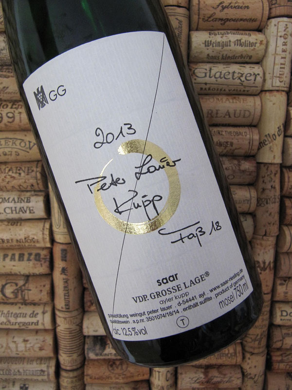 Riesling Fass 18 „Kupp“, Grosses Gewächs, 2013 (foto 2)Vůně je podmanivá a přesto trochu zavřená (otevřeno 9 hodin dopředu), plná, poměrně intenzívní a vyvážená, minerálně-ovocná (hrušky, kdoule, citrusy, kandovaná citrónová kůra), s tóny bílých květů a náznakem medu. Chuť navazuje, přidávají se tóny bílého čaje. Víno má pevnou a přesnou strukturu, je příjemně šťavnaté a harmonické, v těle plné, a má velmi dlouhou perzistenci. Přesto, že by mělo být z Lauerových GG nejvíce ovocné, působí docela složitě a není snadné jej uchopit nebo pochopit. Třeba se za pár let nabídne v přímějším světle.