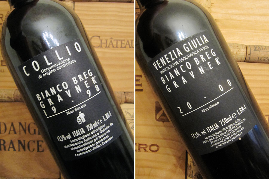 Bianco Breg, IGT, 2000 (foto 4b)Vynikající ročník (RP 90). Vůně je plnější, výrazná a intenzívní, živější než u předešlého, minerálně-ovocná (čerstvá pomerančová šťáva, kandovaná pomerančová kůra), mléčný karamel, med, sůl. Chuť dokonale navazuje, včetně pomerančové hořčinky. Víno má pevnou a přesnou strukturu, je ideálně šťavnaté a harmonické, v ideální kondici, má plnější tělo, jemné taniny a velmi dlouhou perzistenci. Geniální víno, které ukazuje, kam až může vinaření dojít, když dáte prostor Bohu a přírodě. Za mě to nej, co jsem od Jošky pil.