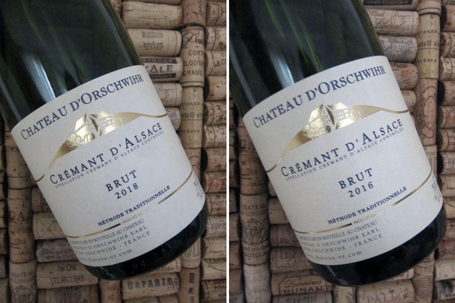 Château d’Orschwihr dělá své Crémanty v kategorii Brut (dozáž do 6 g/l) čistě z Chardonnay, přimž polovina keřů určená pro jeho výrobu je vysázená v roce 1995, druhá pak v roce 1999. Vína tráví na kalech běžně 3 až 5 let, což je na úrovni apelačních podmínek pro ročníkové Champagne. V portfoliu má ale i vína, která strávila na kalech 7, 10, 12 nebo 15 let. I taková dnes ochutnáme.