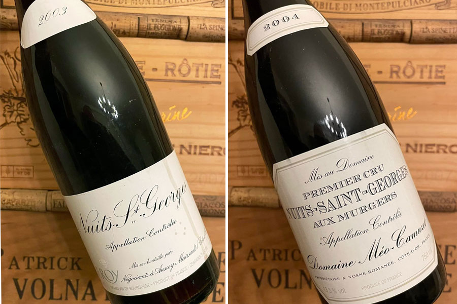 Meo Camuzet, Nuits-Saint-Georges 1er Cru „Aux Murgers“, 2004 (foto 5b)Poloha v severní části oblasti, hned pod Aux Cras. Vůně je intenzívní, plnější a elegantní, vyvážená a poměrně koncentrovaná, minerálně-ovocná (třešně, jahody, maliny, citrusová linka), s troškou vanilky, mléčného karamelu a sudem na pozadí. Chuť navazuje, přidává se vjem sušených malinových listů. Víno má pevnou a přesnou strukturu, je krásně šťavnaté a vyvážené, v těle střední až plnější, s vyššími až vysokými ovocnými taniny a velmi dlouhou perzistencí. Wow. Parádní víno, které řadím k těm nejlepším burgundským, které jsem v tomto velmi složitém ročníku pil.