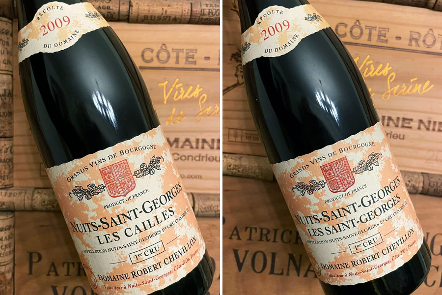 Robert Chevillon, Nuits-Saint-Georges 1er Cru „Les Cailles“, 2009 (foto 6a)Další špičková poloha v jižní části NSG, hned vedle Les Saint Georges. Vůně je plná, intenzívní, koncentrovaná a nabušená, hladká a možná až příliš moderní, s náznakem animálnosti, jinak minerálně-ovocná (přezrálé moruše, černé třešně, citrusová linka), s tóny vanilky a výrazným podílem sudu. Chuť dokonale navazuje. Víno má pevnou a přesnou strukturu, je úžasně šťavnaté, trošku zavřenější, v průběhu komplexní a harmonické, v těle plnější, s vyššími vyzrálými ovocnými taniny a dlouhou perzistencí. Robert Chevillon je aktuálně možná největší vinařské jméno NSG. Tomuhle vínu je málo co vytknout, přesto je na můj vkus příliš moderní a “macaté”.